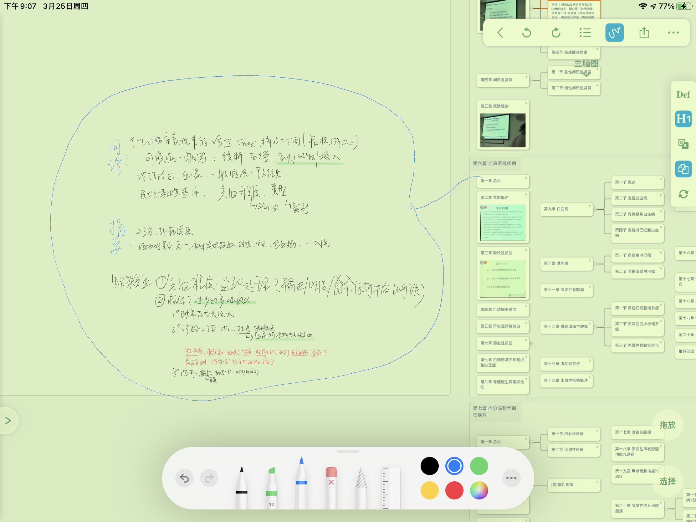 我主要应用于我的实践课,实践课的笔记不属于教材,又和教材相关,也需要实时翻阅教材和脑图的相应位置,所以只能写在脑图卡片中,这样也方便课后我的梳理总结。关键是脑图手写它显眼啊,脑图中一眼就能找到哪里是手写的部分,贼方便,理论和临床结合绝了。