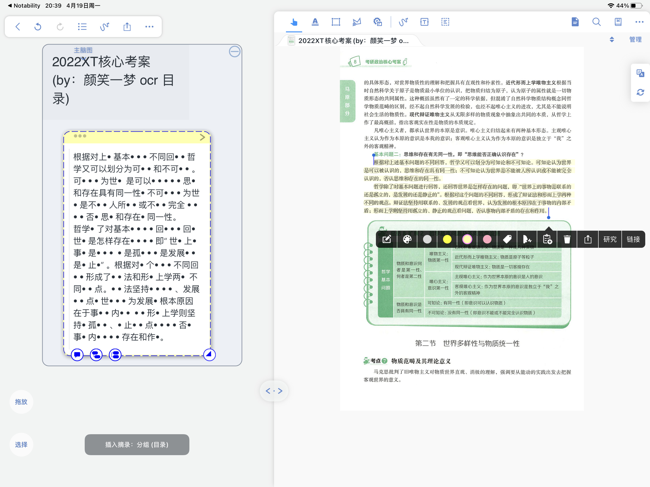 您好,我现在使用的是最新版的Margin note3以及iPadOS 14.4.2最新系统。我在将扫描版书籍导入电脑中的abbyy进行ocr识别再精校之后导入到margin中进行笔记时,选择关闭ocrpro(我已订购了ocrpro年版),这时候记笔记识别出来许多字符不能显示,如图。但是我又将这个ocr后的书籍导入到notability和goodnote中进行实验都是没有出现问题的。所以我想问一下这是什么bug,还是说对字体有要求?