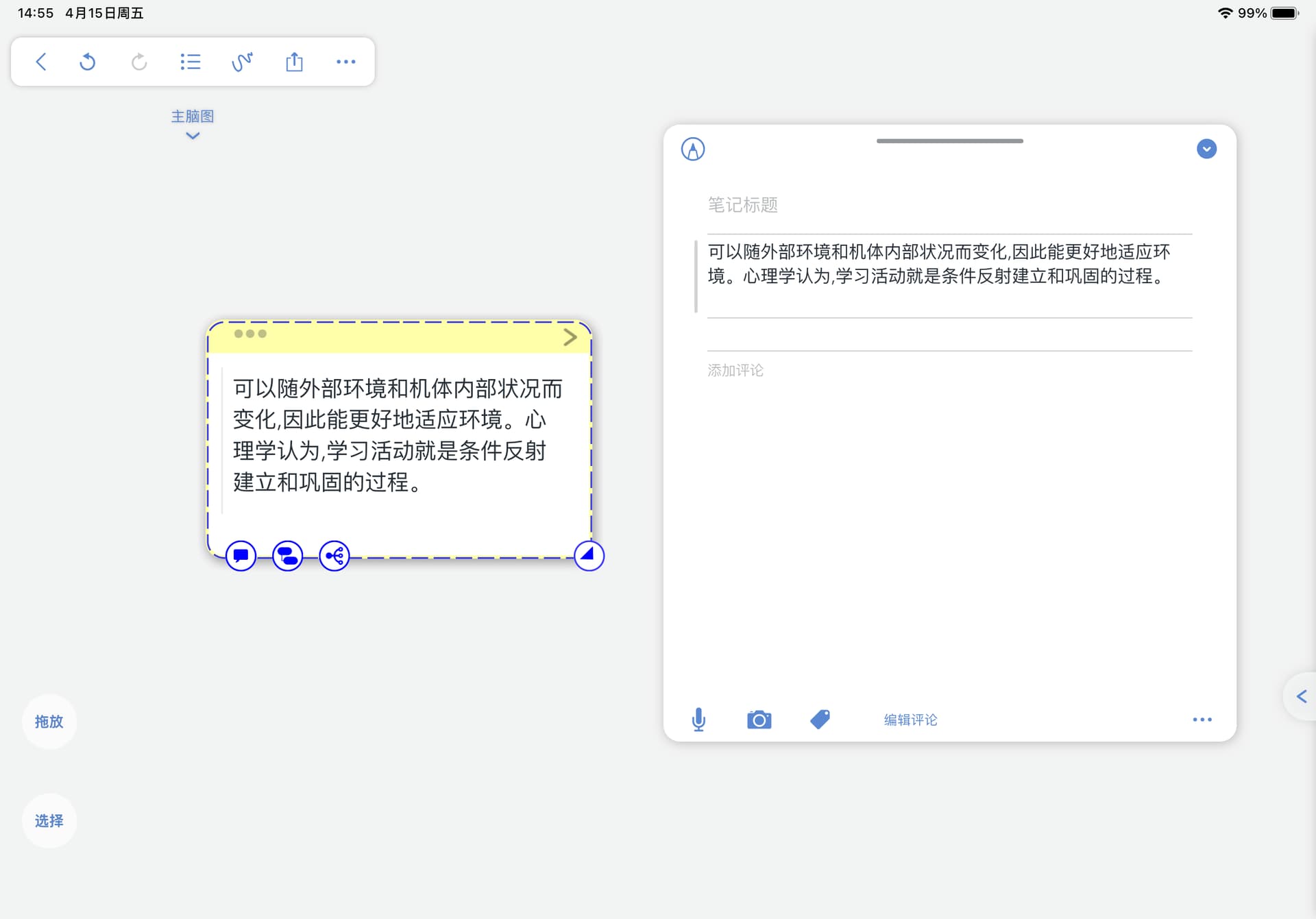 ,然而,脑图的卡片组里面却是独立的两个评论,而且评论间不能合并,如果只是把一个评论间切粘贴到另一个评论,被剪切的空白评论不会消失,影响美观。如图