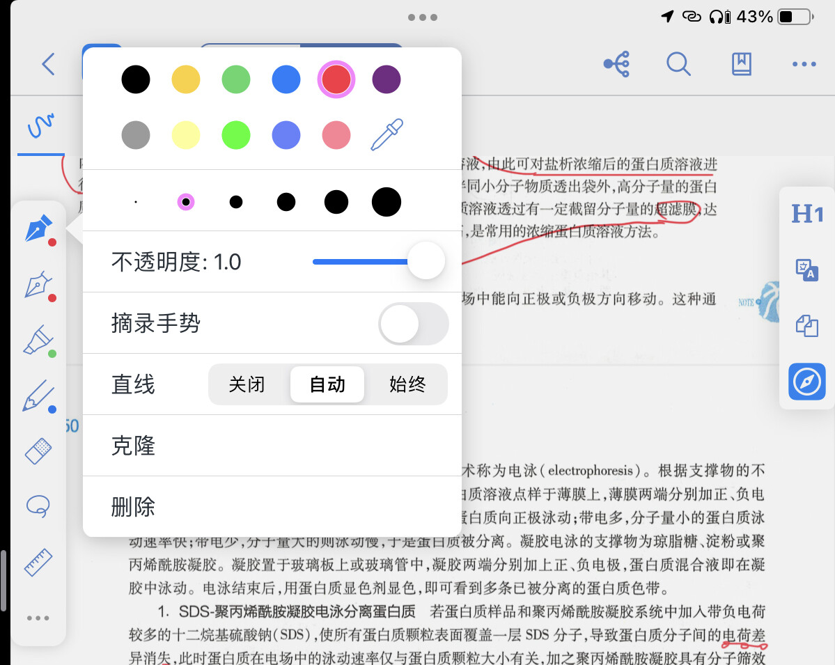 场景说明:通常我开了“直线自动”(方便重点内容下划线),但是有的时候需要画条曲线就得“直线关闭”(比如链接两个相关知识点),画完曲线之后重新打开“直线自动”。