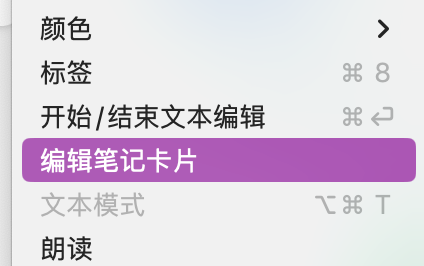 自定义“编辑笔记卡片”的快捷键可以使用,谢谢!