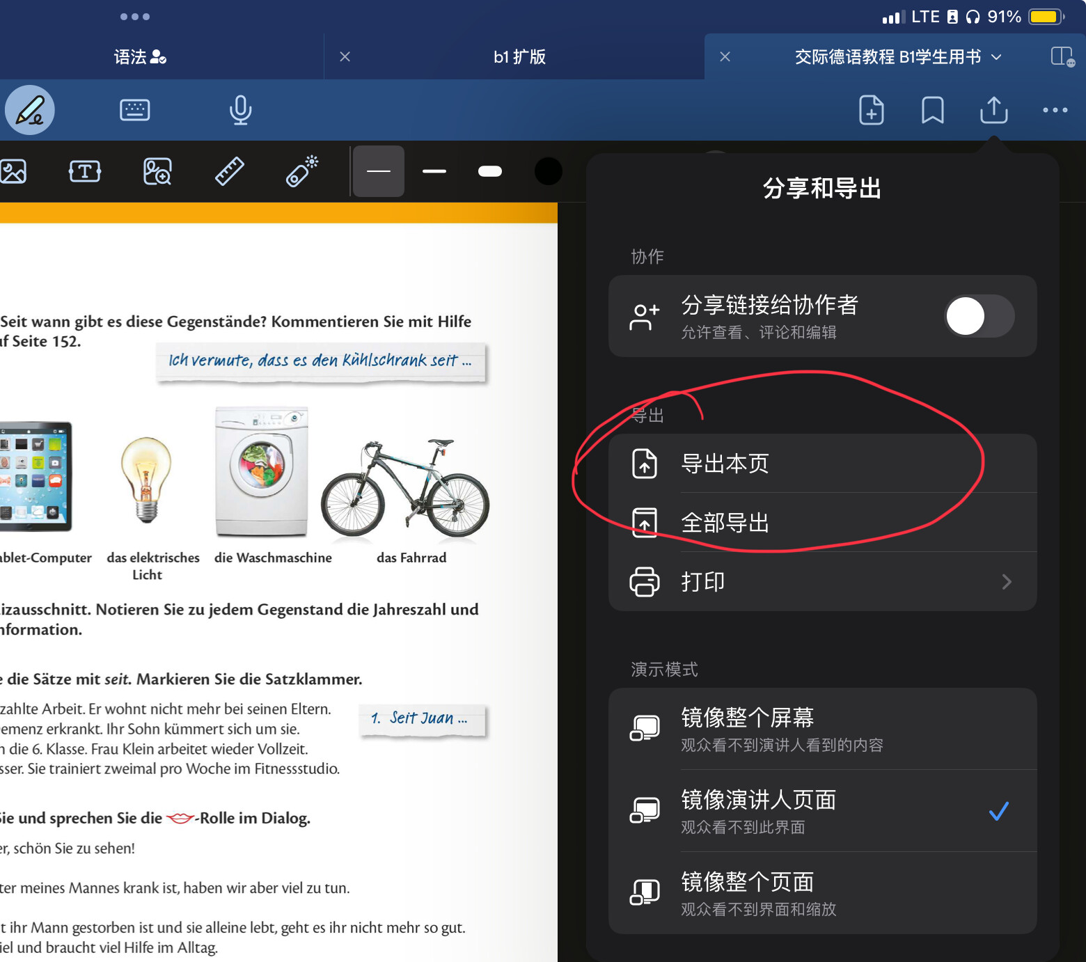 我经常会用到需要导出单个或者连续几个页面,比如在用教科书时在某一面上做了批注,想要单独导出哪一个页面却发现只能导出整个文档。而我只需要导出选中页面为图片或者pdf格式。目前我还得把整个文档导出然后倒入到goodnotes里面才能单独导出某几页。太复杂且消耗内存了。
