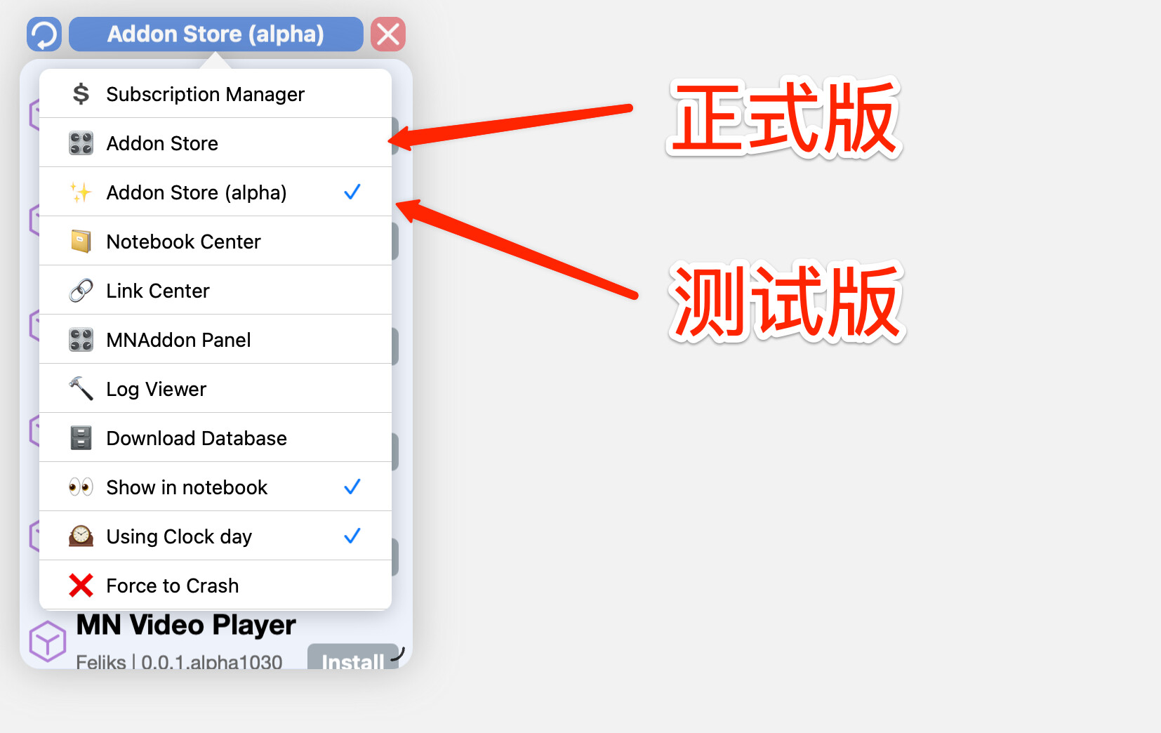 - 新增一个Roadmap选项,点击会通过MN Browser打开网址: https://mnaddon.craft.me/roadmap