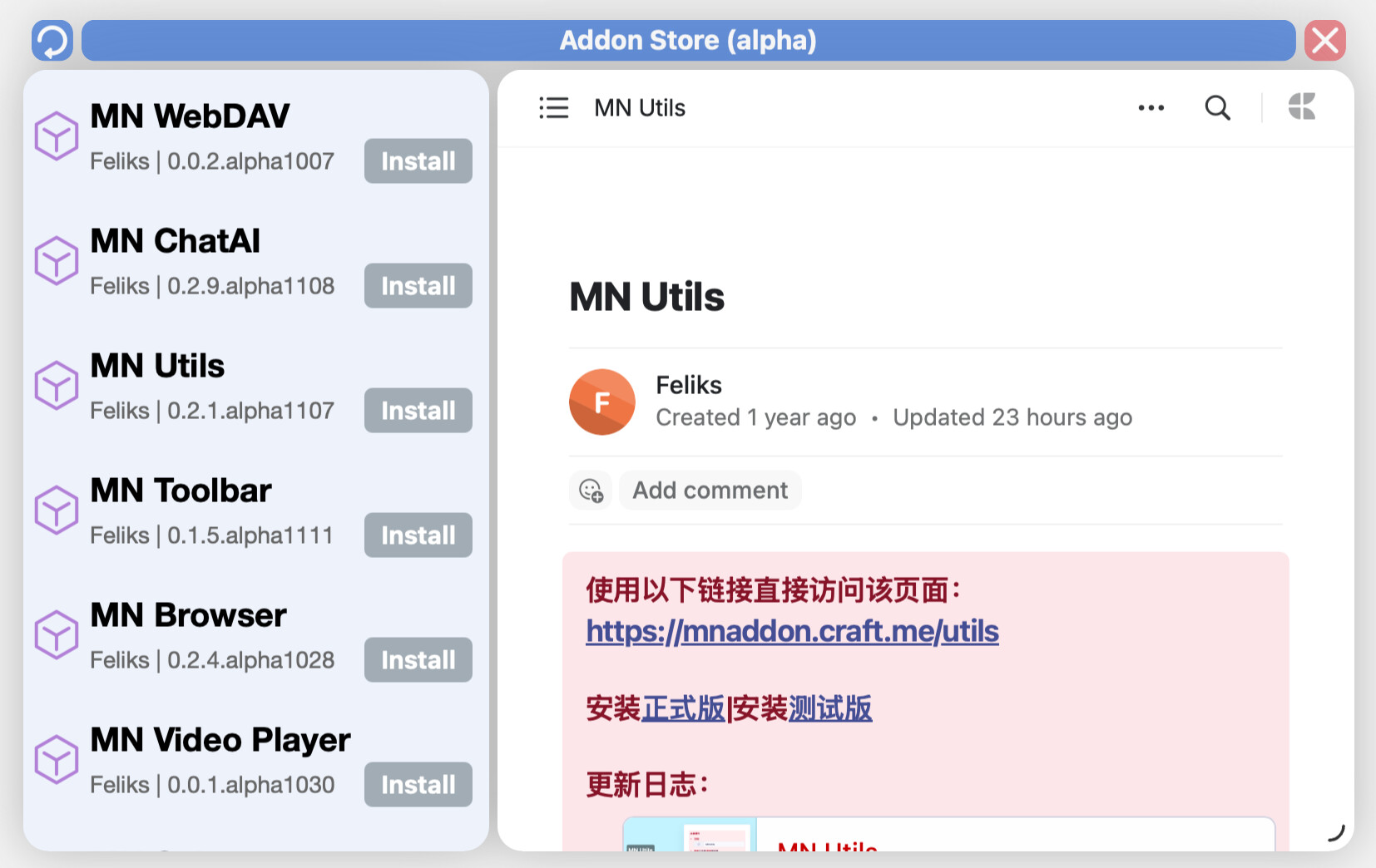 - 如果你对插件有任何反馈,都可以通过以下链接:https://mnaddon.craft.me