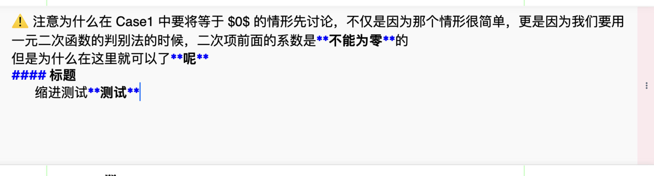 如下图所示,对留白进行Markdown模式编辑的话,标题和缩进是能够正常显示,但是粗体和斜体在编辑的时候是正常的,编辑完成后就无法正常显示了。