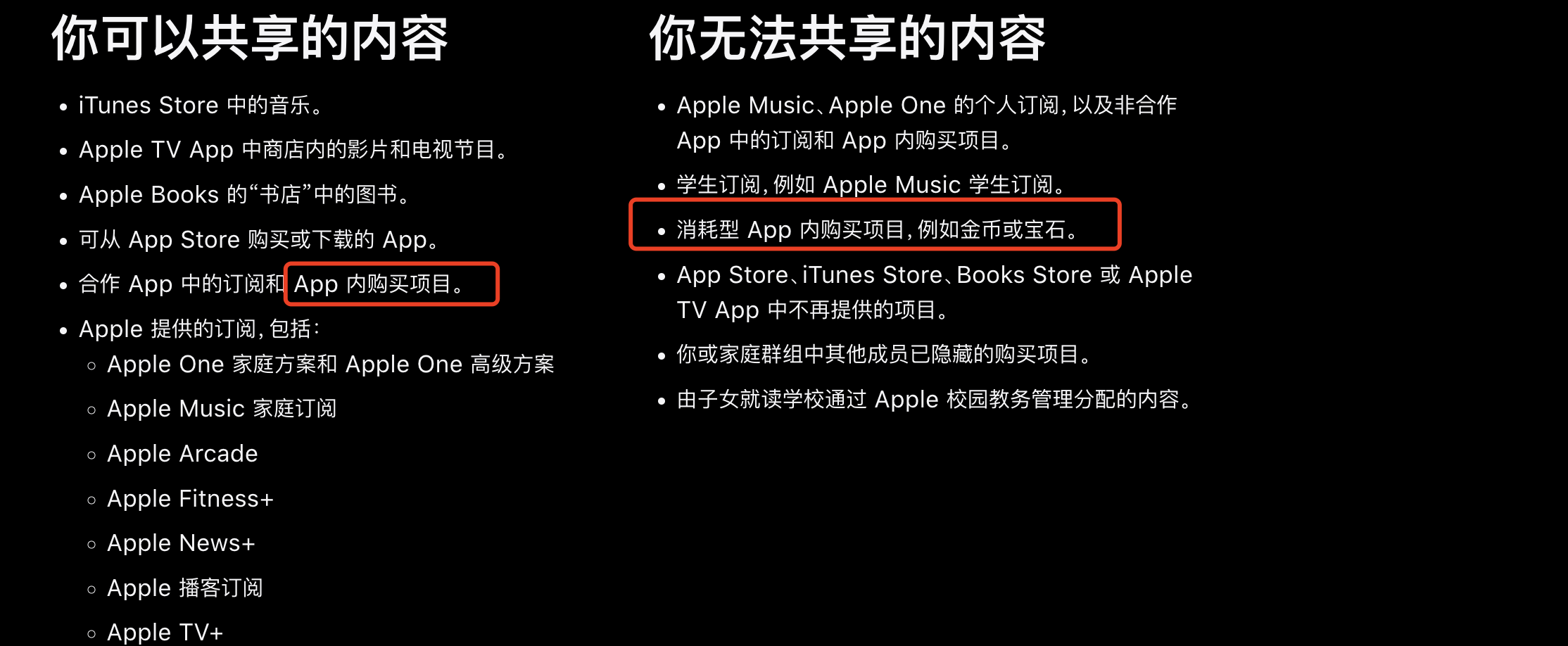 买断内购不支持共享,开发者确实没说过,但苹果说过。