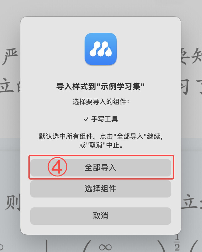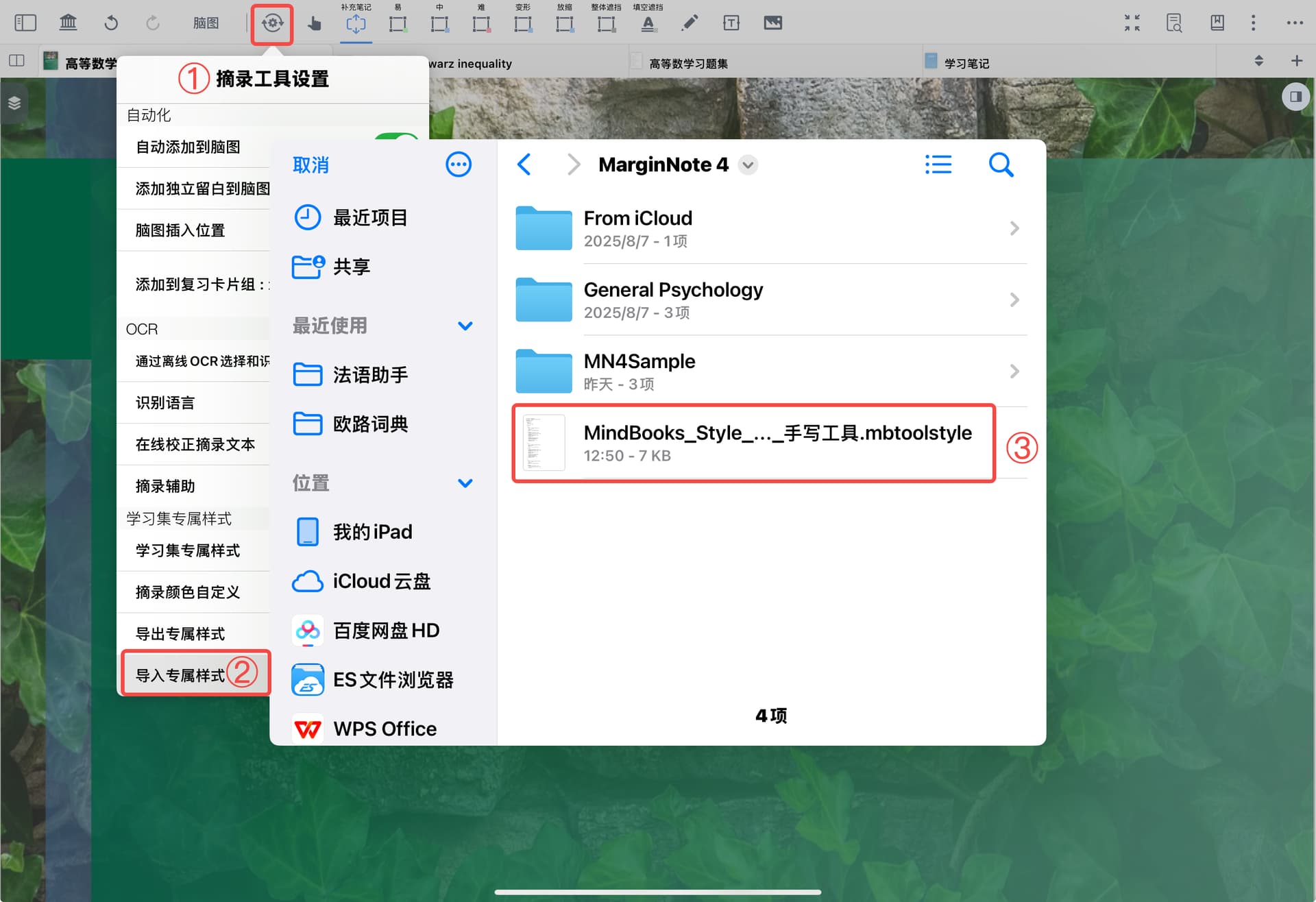 2. “摘录工具设置”-“学习集专属样式”- “导入专属样式”,选择刚才下载的样式文件.mbtoolstyle