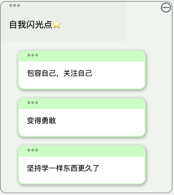 问:绘制自我成长脑图一段时间后,你发现“思维习惯发生了改变”、“更加认可自己”。在所有这些积极的改变中,哪一个是最让你感到惊喜的?