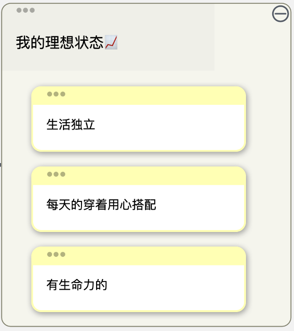 答:当我下意识地不断将脑图进行补充后,我的注意力逐渐放在了“我”身上(例如,我想成为一个什么样的人)。在现实中、网络上遇到的一些让你感到内心波动的人或事上,第一反应从羡慕甚至嫉妒,慢慢转变到渴望拥有,我开始思考如何拥有像Ta一样的品质,思维的习惯开始从外界转移到“我”的身上。
