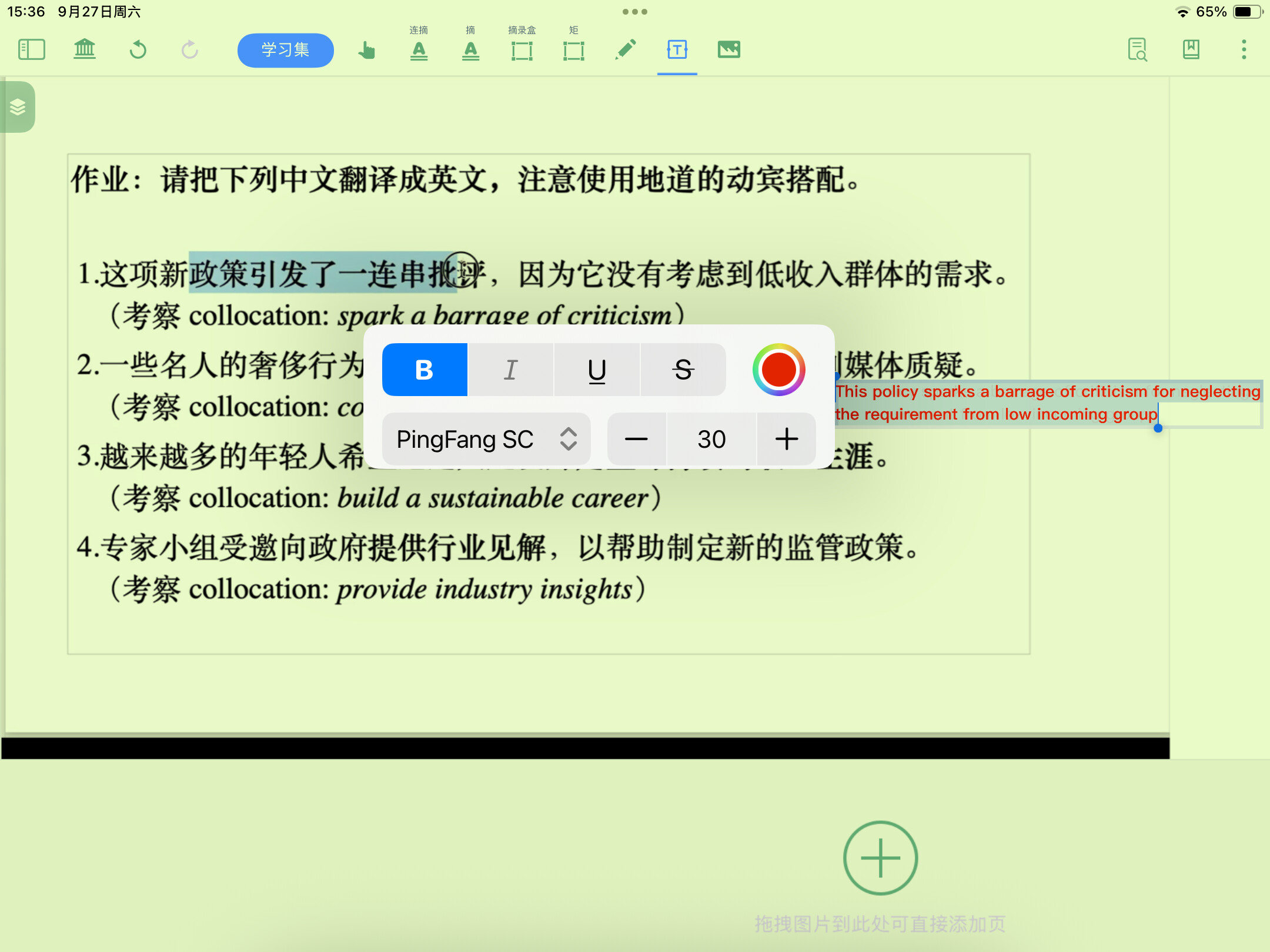 请注意,文本框里面的字体大小已经选到了30号,但是对比原文中的字体大小依旧小得不值一提。希望能注意到这样的细节。