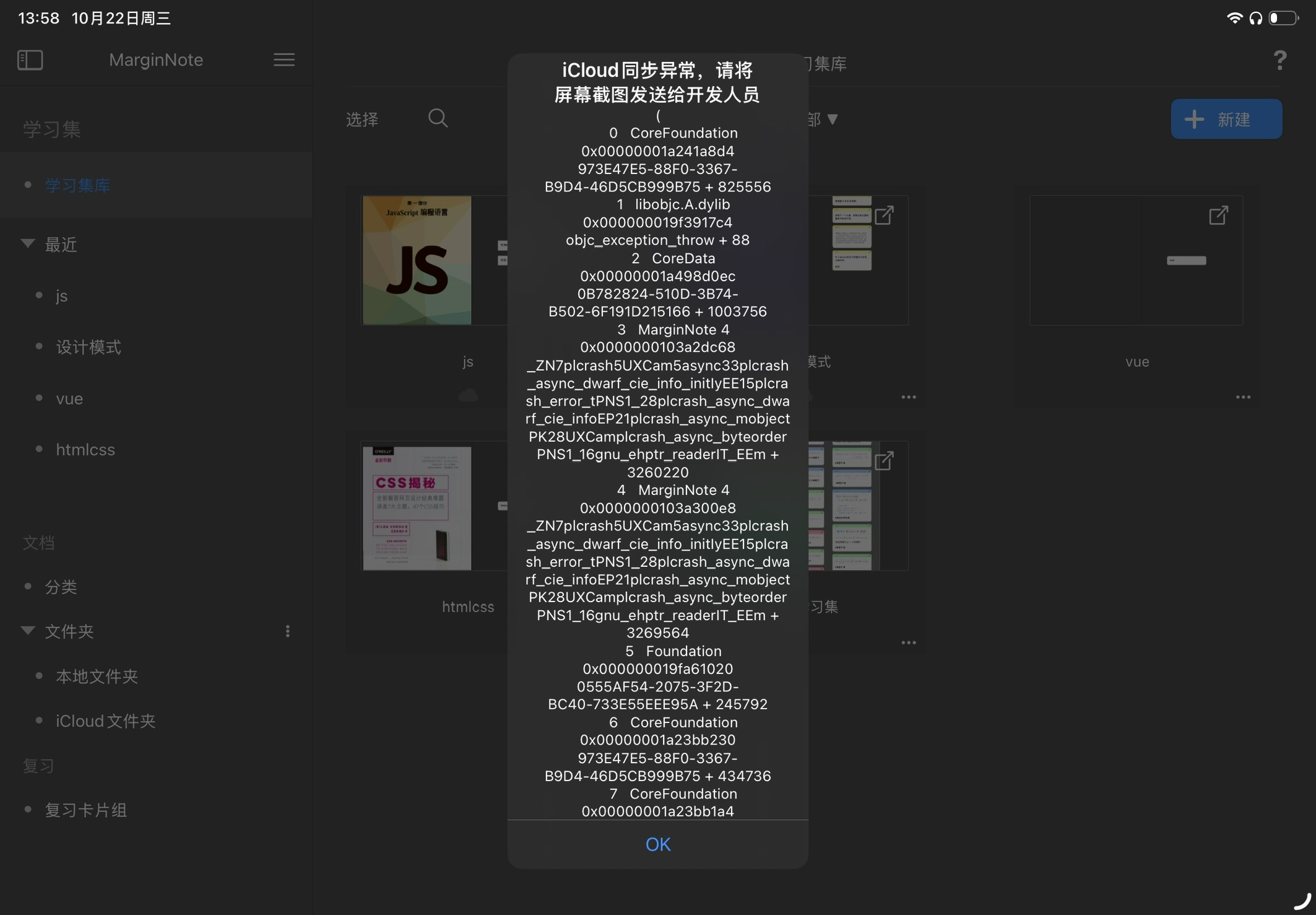 系统版本: ipados 26.0.1 提示出错时机:每次进入app时+下载云端学习集时