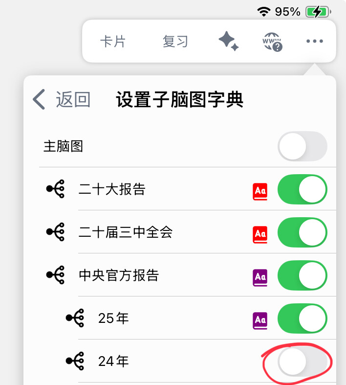 事实上,只要打开主脑图字典,所有的子脑图也会添加进字典中,这里的逻辑很有问题,2026年1月26日,还是没有修复。