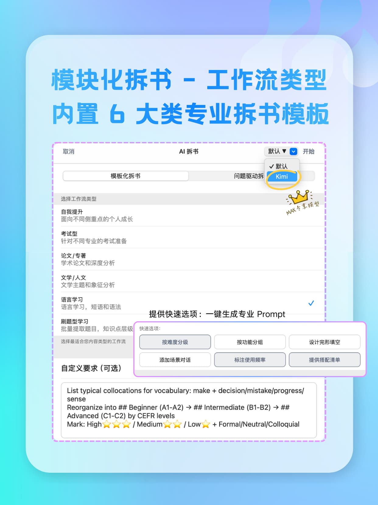 • 双模式拆解:模块化模板适配多场景,问题驱动精准聚焦目标