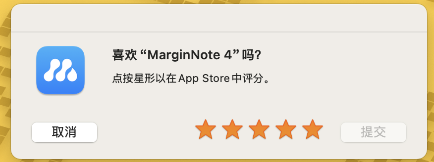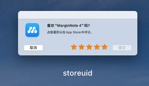 好像从商店下载,然后评价了之后,再重新安装dmg,就没有出现评价提示了。