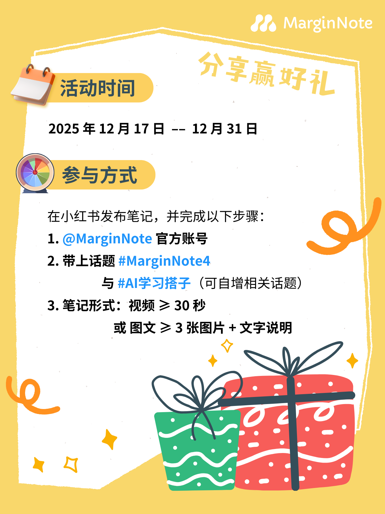 带上话题 #MarginNote4 与 #AI学习搭子(可自增相关话题)