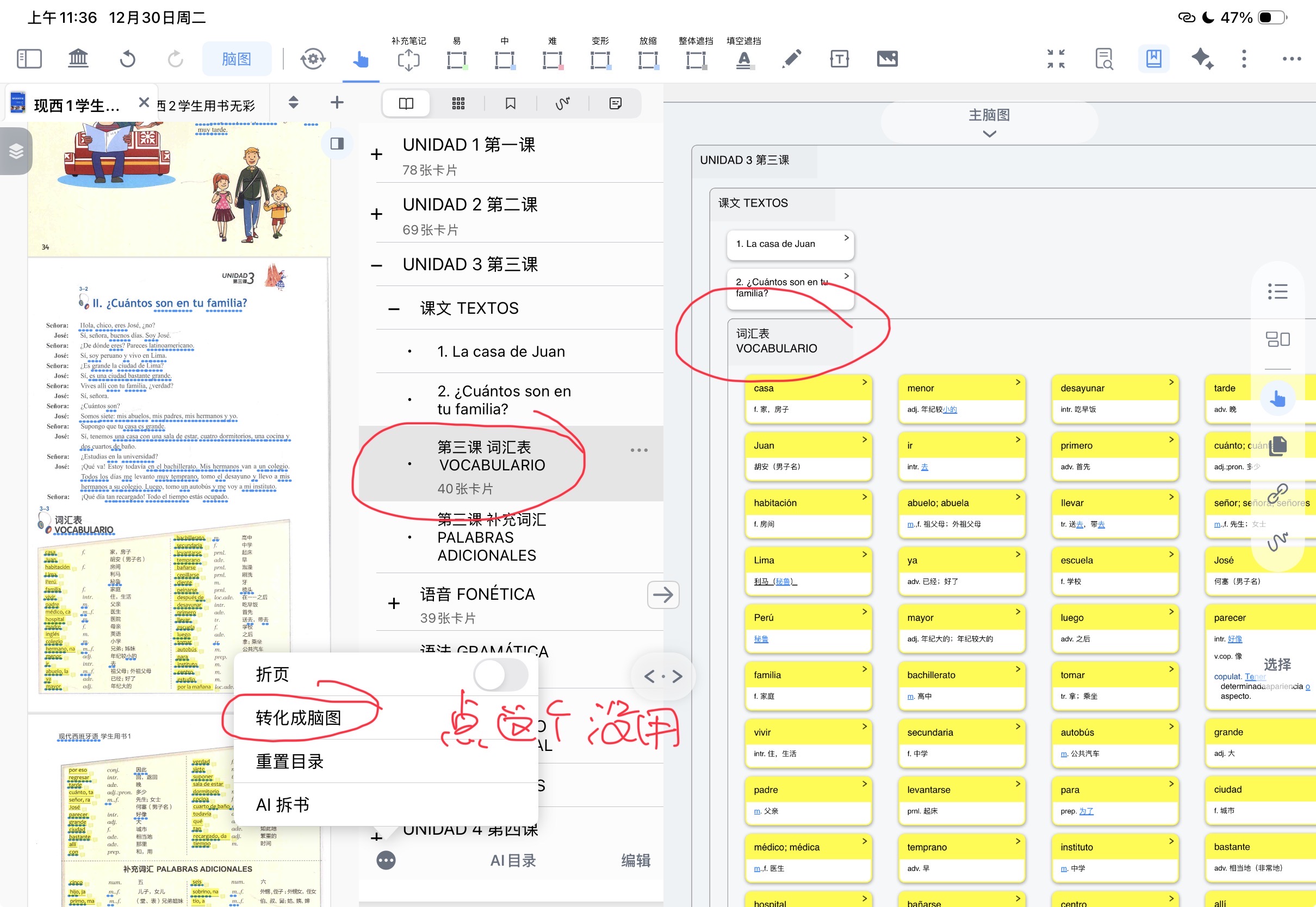 我本来是就按照书里写的词汇表来写的目录,后面感觉不好,因为标题链接显示就跟其他一样了,就给他改了一下,在前面加上了“第几课”。因为之前就用过这个转化成脑图,它就按照前面没有“第几课”的显示了。可是我修改目录之后,脑图还是不变,点了转化成脑图也没用。