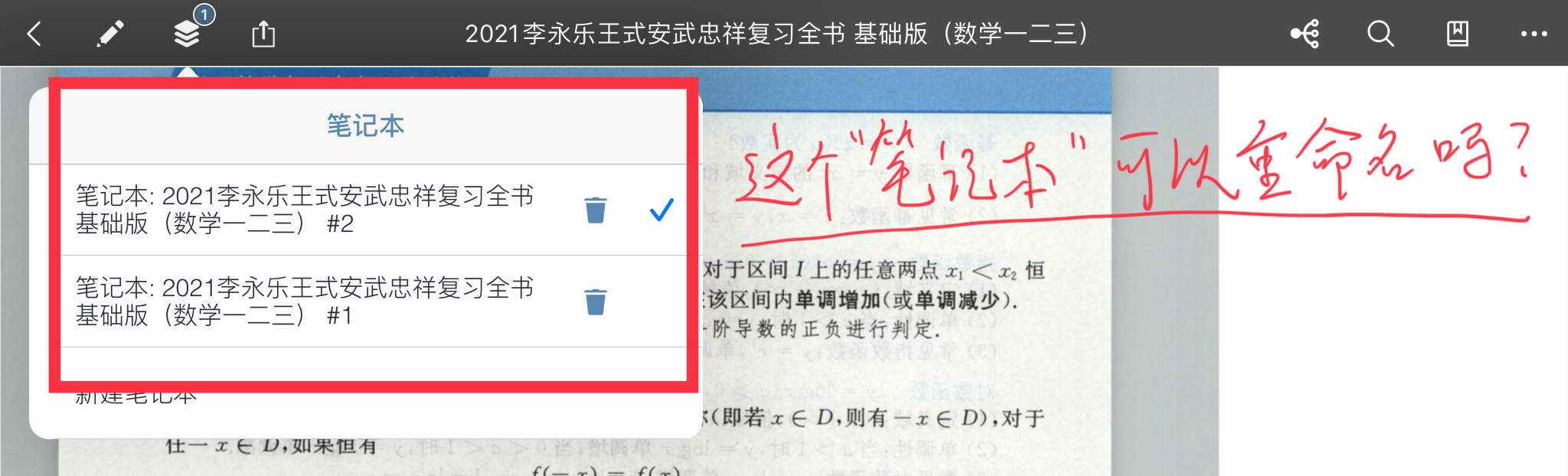 这个笔记本名称希望可以个性化重命名;#1和#2不太方便识别。
