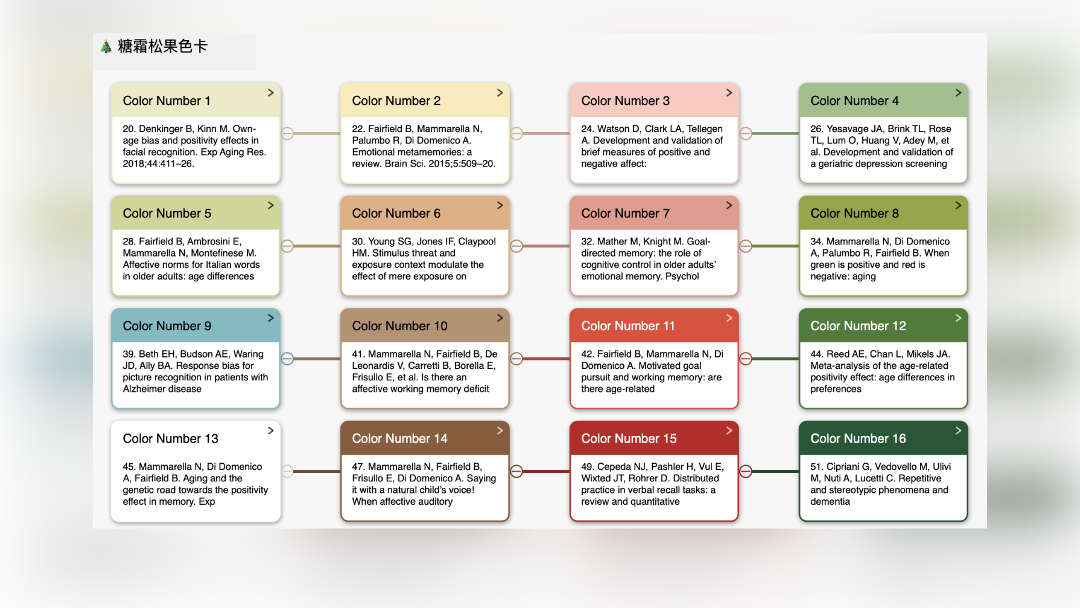 糖霜松果色卡: 温暖复古的圣诞色系,用来搭建知识框架超合适。颜色区分度高,逻辑一目了然