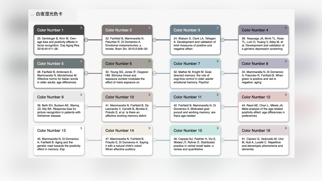 白夜澄光色卡: 主打护眼低疲劳,适合长时间阅读文献、刷课。冷色调为主,让眼睛不再酸涩