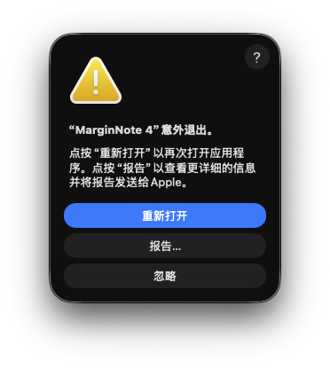 更新电脑系统至macOS 26.3,使用MarginNote 4.2.4 (20400) 版本的软件时,出现无法正常打开学习集的问题。 软件不打开学习集时可以正常操作,一旦点开任何一个学习集即会出现软件闪退的情况(如下)。