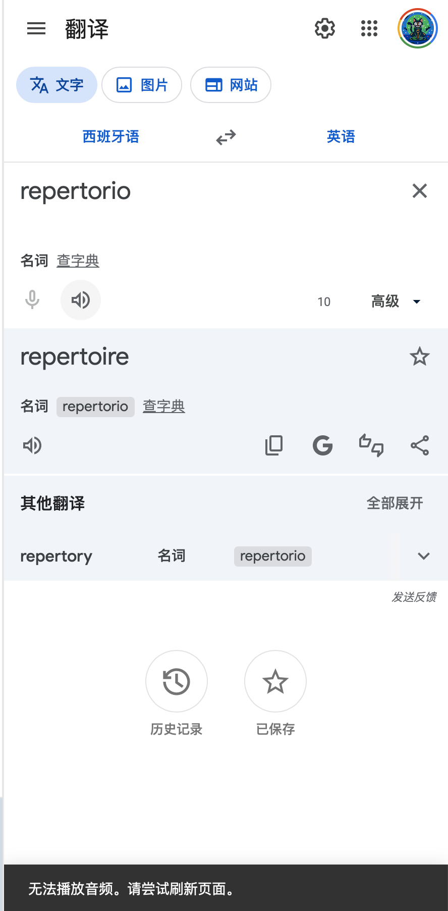 研究----谷歌翻译:无法播放声音